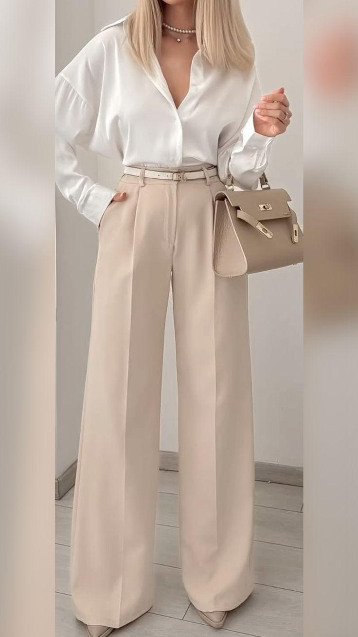 Polished yet versatile, neutral trousers are a true wardrobe essential. They balance professional elegance with everyday wearability. Pair them with shirts for workdays or with crop tops for relaxed evenings.
